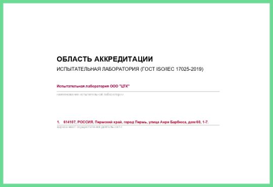 Обращаясь в «ЦТК» – Вы можете быть уверены в качестве предоставляемых услуг. Наша компания имеет аттестат аккредитации № RA.RU.21РУ58, а также обладает всей необходимой документацией.